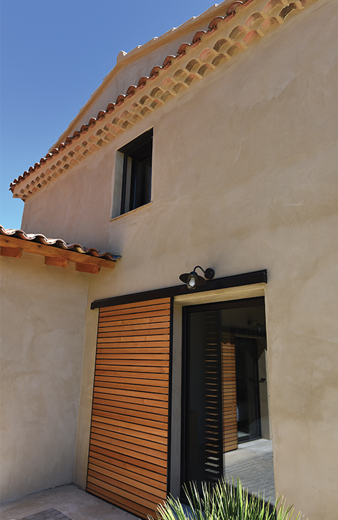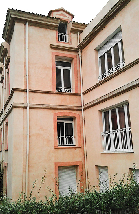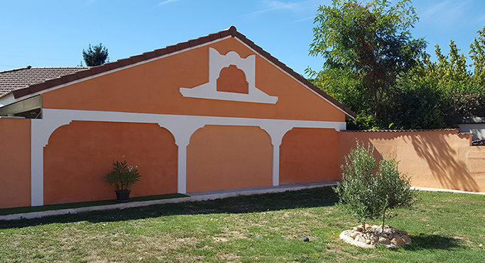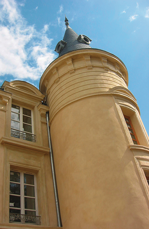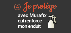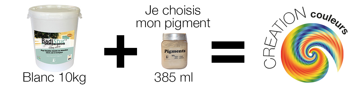 Formulation pour stuc ou badigeon, extérieur, à base de chaux aérienne, farine de marbre, talc et caséine.