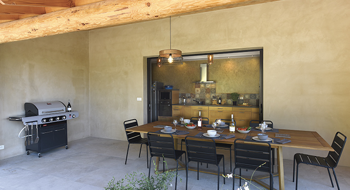 Badigeon prêt à l’emploi, extérieur, à base de chaux, farine de marbre, talc, caséine et pigments minéraux.